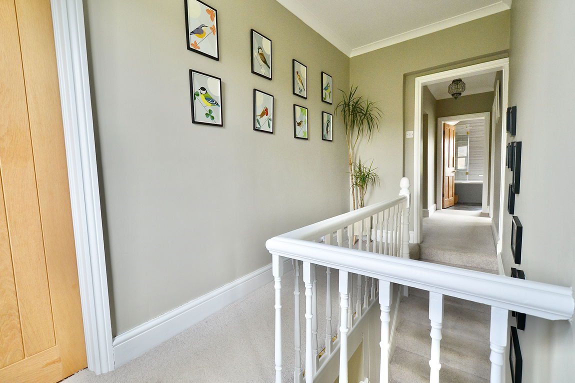 Upstairs, a spacious landing leads to four well-proportioned bedrooms and a modern updated stunning family bathroom. The principal bedroom enjoys an attractive outlook over the garden, fitted wardrobes, and the benefit of an en-suite shower room.