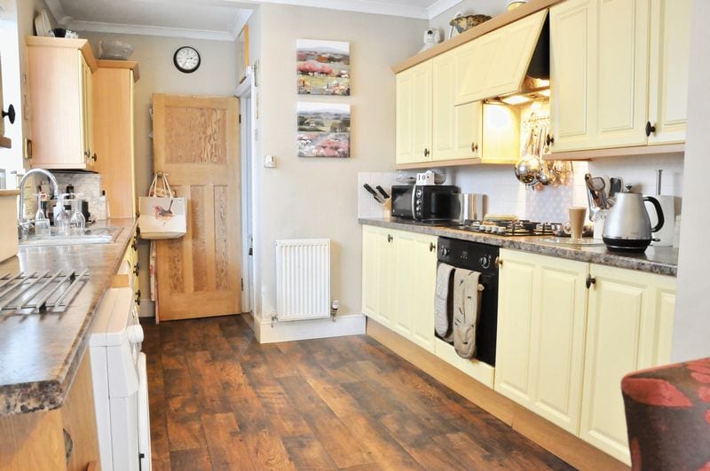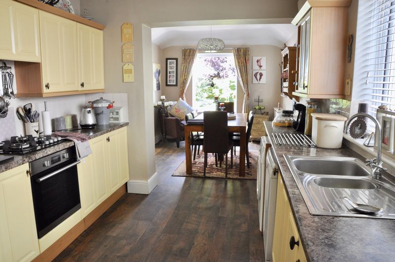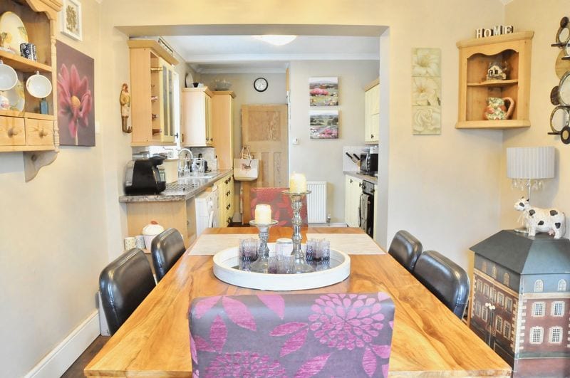The property is approached via the paved driveway to the storm porch with UPVC door leading into the entrance hallway. With lovely traditional wood flooring and storage, the hallway has stairs to the first-floor accommodation and wooden doors to the two reception rooms and the kitchen diner. The front room boasts a bay window to the front with shutters, a stunning open feature fireplace, ornate coving and picture rail. The second reception room offers real flexibility to the accommodation and also boasts wood flooring, a lovely fireplace, picture rail and double doors to the conservatory, which has a radiator and power making it an all year-round useable room. The extended kitchen diner is the hub of the house and is furnished with a range of cottage style wall and base units, roll top work surfaces integrated oven hob and extractor and wood effect flooring. There are double doors to both the garden and the conservatory.
