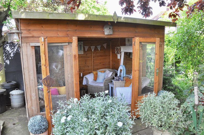 Outside there is ample parking to the front and side, a separate garage and the sunny aspect rear garden is fenced and has a patio, lawn and is stocked with a variety of mature trees, shrubs and bushes.