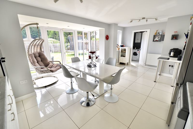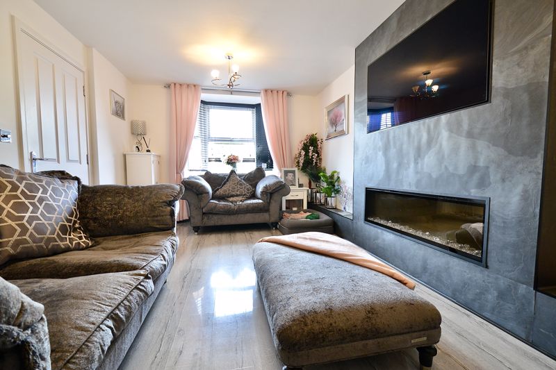 Approached via paved pathway and driveway to the front door opening into a lovely hallway with stairs rising to the first floor and WC and storage beneath. The sitting room has a bay window to the front and a stunning modern built-in fire and cleverly wall mounted tv incorporated in the surround. The kitchen diner family room is bright with a bay window and doors throwing in lots of light. The kitchen is fitted with an extensive range of modern wall and base units, work surfaces and five burner gas hob and built-in oven. Off the kitchen is a useful utility room and further door to the rear garden.
