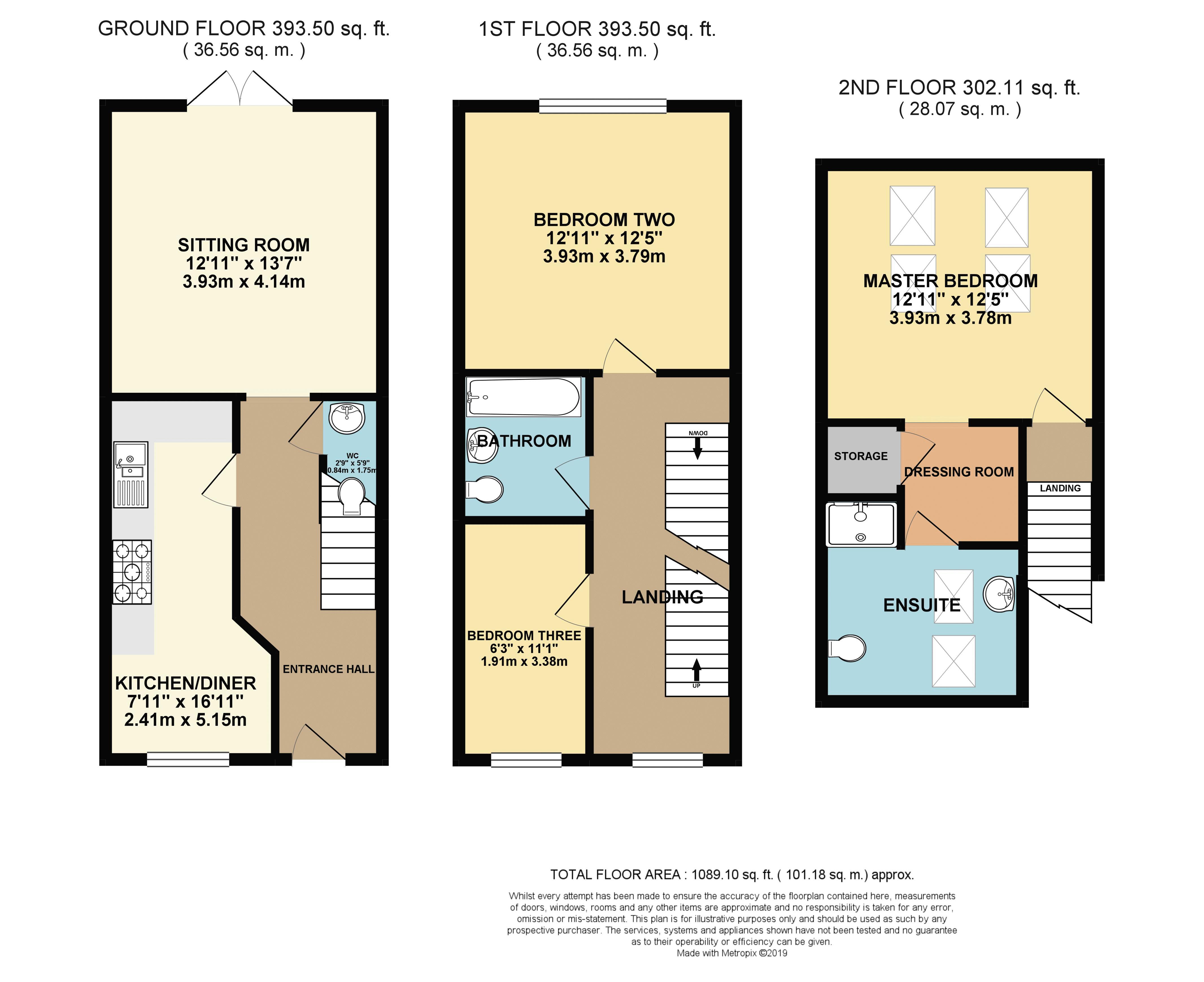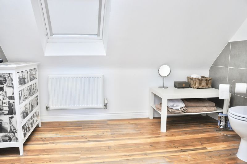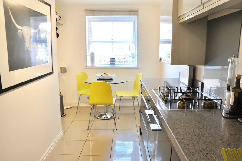This lovely home is approached via the court yard to the front door leading into the entrance hallway with stairs rising to the first floor, downstairs WC and doors to the kitchen diner and sitting room. Fully fitted with a range of wall and base units the kitchen diner has stunning work surfaces and integrated appliances. The sitting room has beautiful solid graphite oak flooring and double doors to the rear garden. On the first floor there are two bedrooms and a family bathroom. On the second floor is the light and airy master bedroom which boasts a dressing area and a large ensuite.