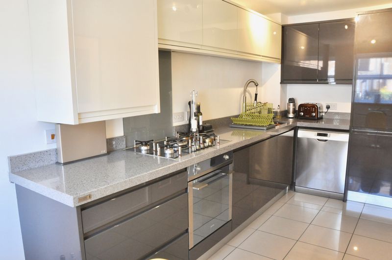 **CHAIN FREE** A stunning three-bedroom family home built in 2013 so still having the remainder of the NHBC certificate to run on it and benefitting from many upgrades by the current owners including Karndean flooring, 50mm Silestone worktops, extra units and Smeg appliances. The property is situated in a peaceful court yard setting which has a lovely Mediterranean feel and there is allocated parking around the side and a virtually south facing sunny rear garden. The property is double glazed, and gas centrally heated throughout.