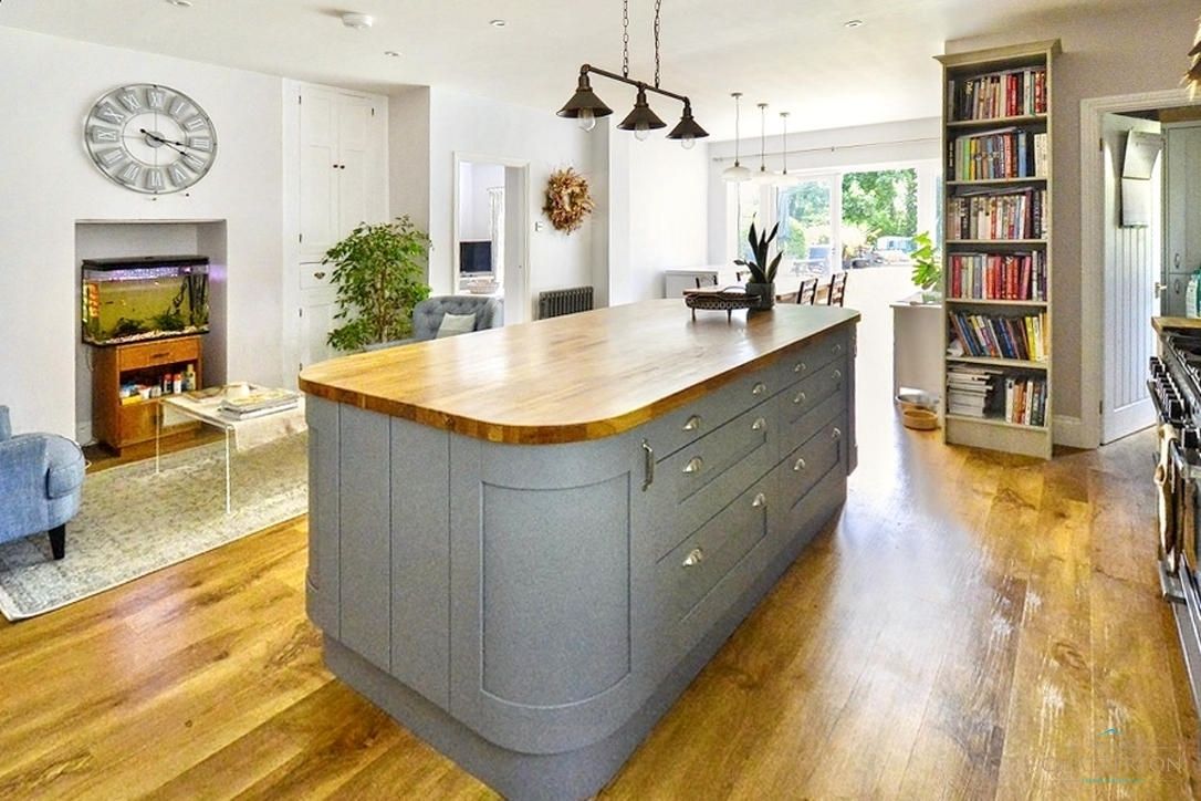 - High-quality kitchen with shaker-style units, solid wood worktops, central island and range cooke