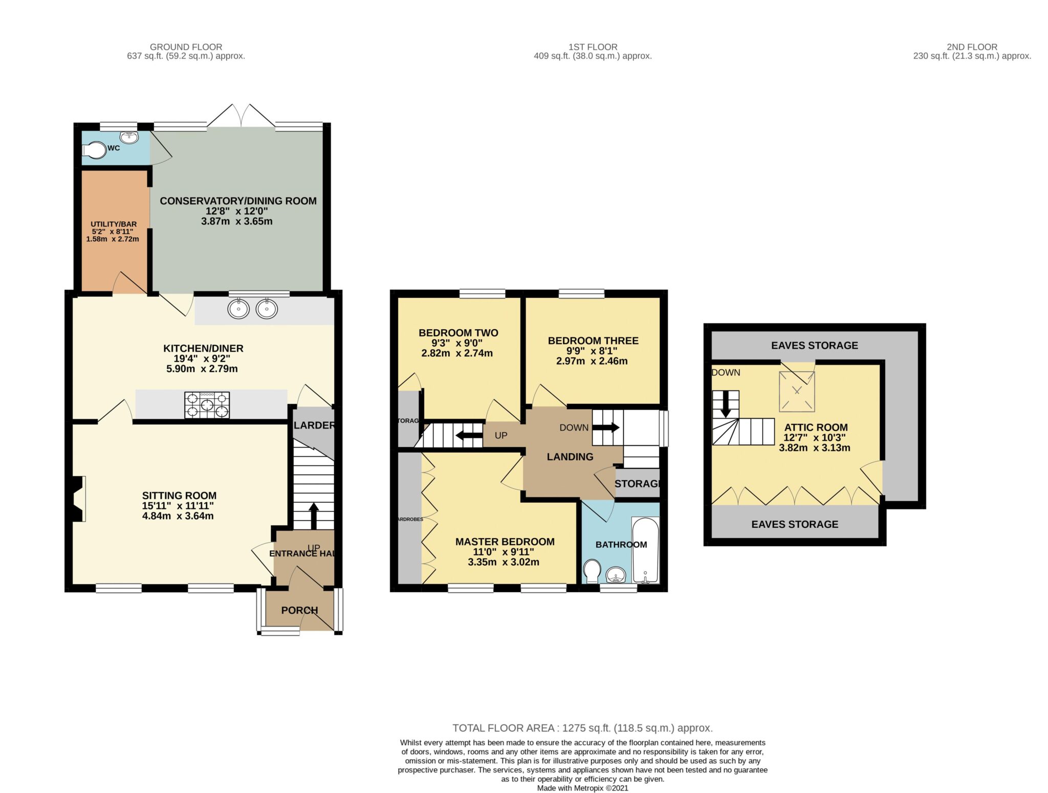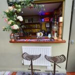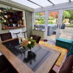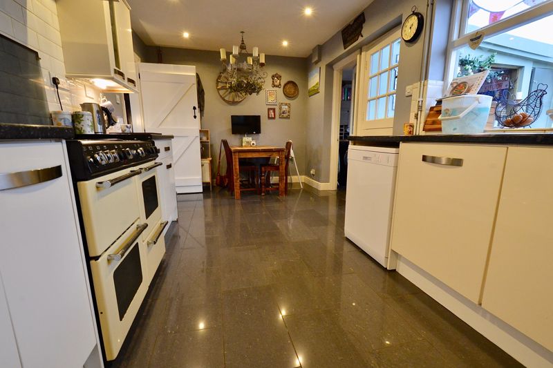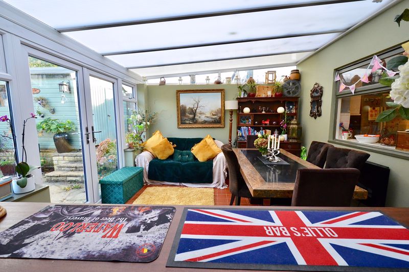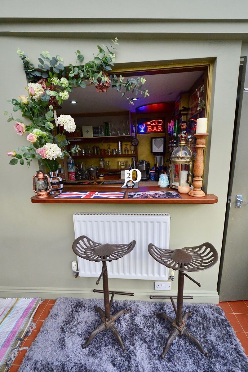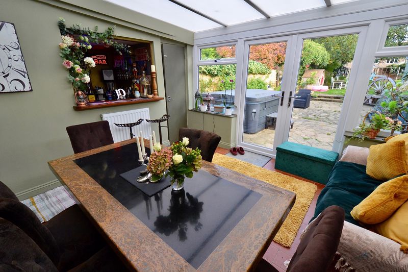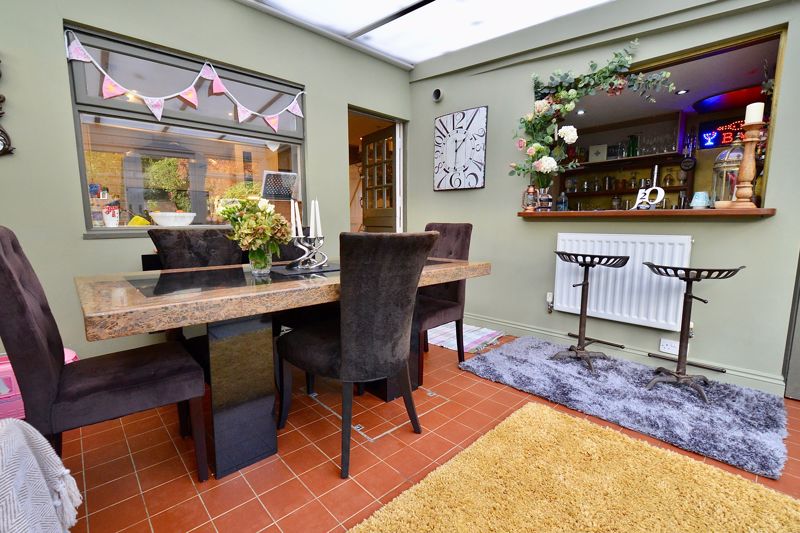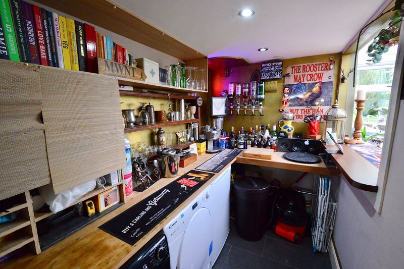 Approached via gravel driveway to porch with door opening into the entrance hallway and stairs rising to the first floor. The cosy sitting room has an open fire in a feature fireplace and two windows to the front. The kitchen diner is fitted with a range of modern wall and base units and boasts a walk-in larder and cupboard housing the boiler fitted renewed two years ago. A stable door leads into the dining conservatory with double doors to the rear, a downstairs wc and the quality bar. The bar is part of the utility room which works well.