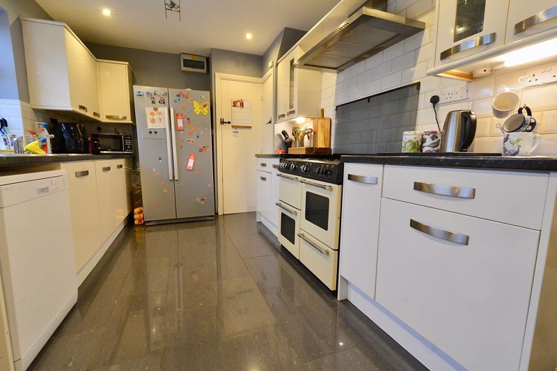 A particular feature of this property is the size of the plot. Ample parking to the front, big garden to the rear. The rear garden starts with a large patio area leading onto a long lawn with mature trees and bushes and at the end a children’s play area, vegetable plots and a well screened chicken run. Viewing essential.