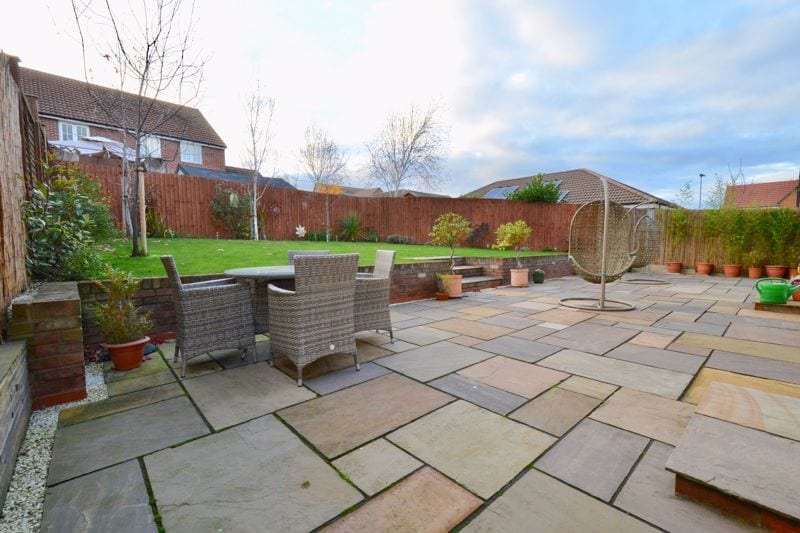 Outside the rear garden has been beautifully landscaped to create a large patio area for al fresco dining and a raised lawn with a rich variety of trees, bushes and shrubs. From the garden there is a pedestrian access to the garage which has power, lighting and loft storage.