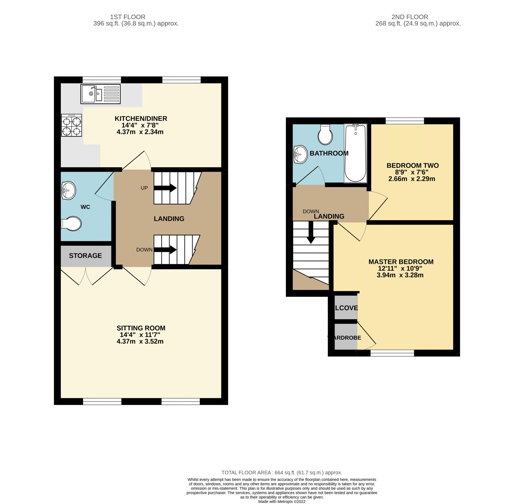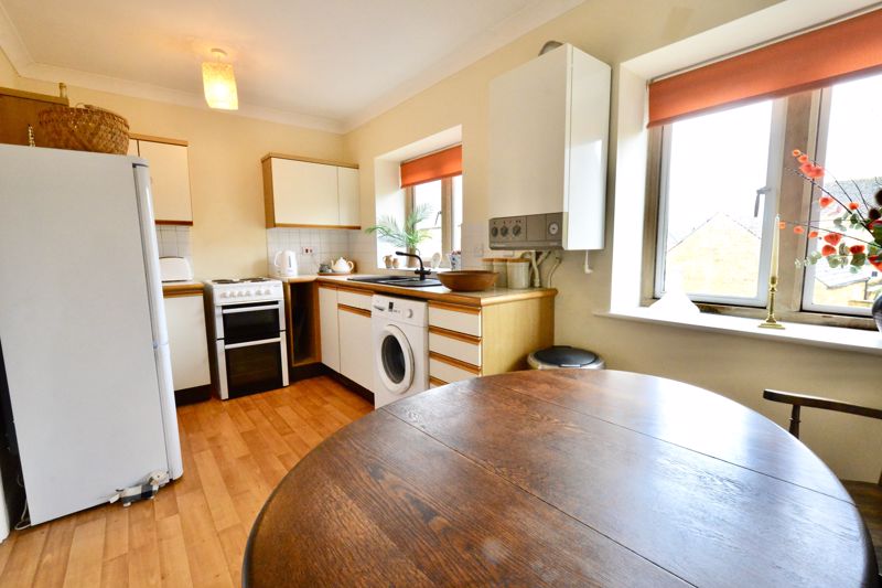 The property is approached from Church Close to a communal parking area and an entrance door on the ground floor to a hall with stairs to a spacious landing. Off the landing there is a spacious sitting room with built-in storage, a WC and a kitchen diner fitted with a range of wall and base units.